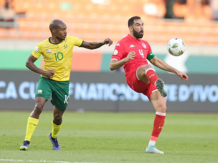Tunisia’s Yassine Meriah is challenged by South Africa’s Percy Tau during their 2023 Africa Cup of Nations Group E match Tunisia’s Yassine Meriah is challenged by South Africa’s Percy Tau during their 2023 Africa Cup of Nations Group E match at Amadou Gon Coulibaly Stadium in Korhogo on Wednesday. Photo: Samuel Shivambu/BackpagePix