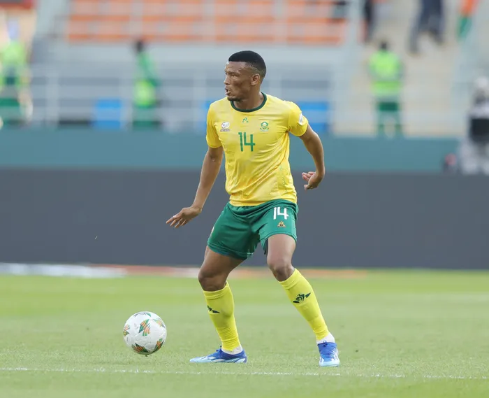 Mothobi Mvala of South Africa during the 2023 Africa Cup of Nations Finals match between South Africa and Tunisia at Amadou Gon Coulibaly Stadium in Korhogo Bafana defenders Mothobi Mvala (pictured) and Khuliso Mudau have shown signs of making a full recovery for their Africa Cup of Nations last 16 clash against Morocco on Tuesday. Picture: Samuel Shivambu/BackpagePix