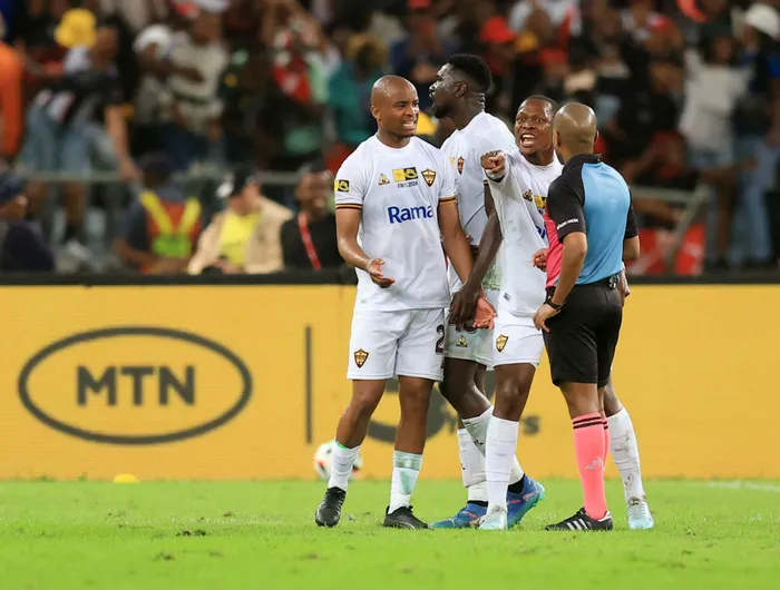 Pirates wonderkid Relebohile Mofokeng then added an even later third – but by that time it seemed that a bitter Stellies just wanted to get off the pitch.